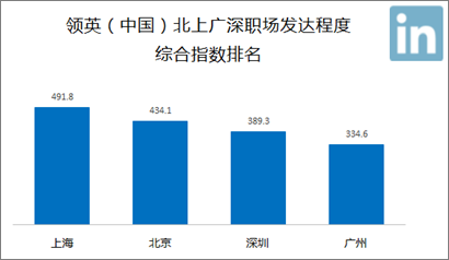 作為參考,領(lǐng)英在本次報告中也對北京、上海、廣州、深圳四個一線城市做了分析。在我們所列出來的五個評價指標(biāo)中,上海分別在“職業(yè)社交用戶數(shù)量”、“職業(yè)社交活躍度”、“海外受教育比例”以及“職業(yè)檔案完整程度”四個指標(biāo)中排名第一,當(dāng)之無愧地成為中國職場發(fā)展程度最高的城市。